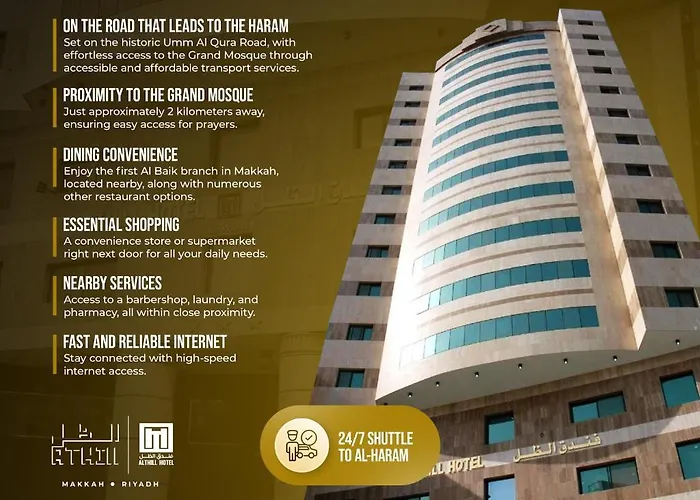 Mescid-i Haram'a 3,3 km uzaklıkta yer alan Al Thill Hotel Mekke, döviz bürosu, emanet bagaj hizmeti, özel bir kasa sunmaktadır. 60th Street semtinde yer alan otel, 3,3 km mesafedeki Ebrac El Beyt Alışveriş Merkezi gibi popüler turistik mekanlara yakındır.
